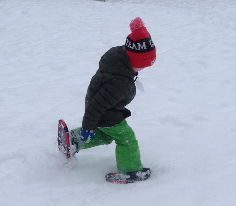One child with rubber boots, teetering on the edge of fascination, dipped a toe at the edge of a puddle, crunching the frozen edge delightedly.