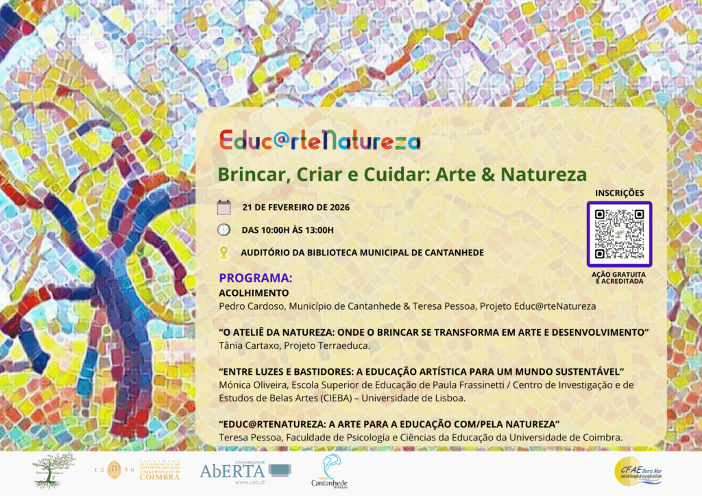 Surge assim o primeiro encontro de 2026 sob o mote “Brincar, Criar e Cuidar: Arte & Natureza”, destinado a profissionais da educação, da animação, mães e pais e todos os agentes que tenham interesse numa educação que valorize a arte e a natureza.