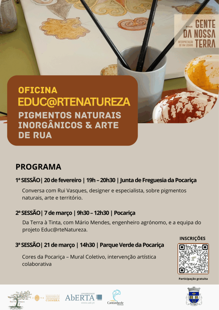 A oficina “Pigmentos Naturais Inorgânicos & Arte de Rua”, promovida pelo projeto Educ@rteNatureza, tem como objetivo proporcionar uma experiência formativa e criativa que articula conhecimento teórico e prática artística, valorizando a riqueza natural do território e a sua aplicação em contextos contemporâneos de arte urbana.